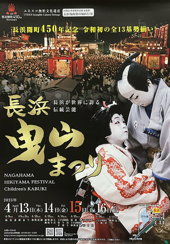長浜曳山まつりは、2016年に、18府県の「山・鉾・行事(やま・ほこ・やたいぎょうじ)」と共にユネスコ無形文遺産に登録されました。